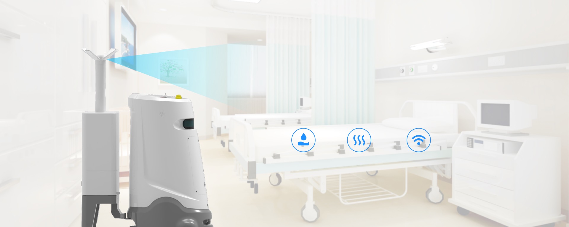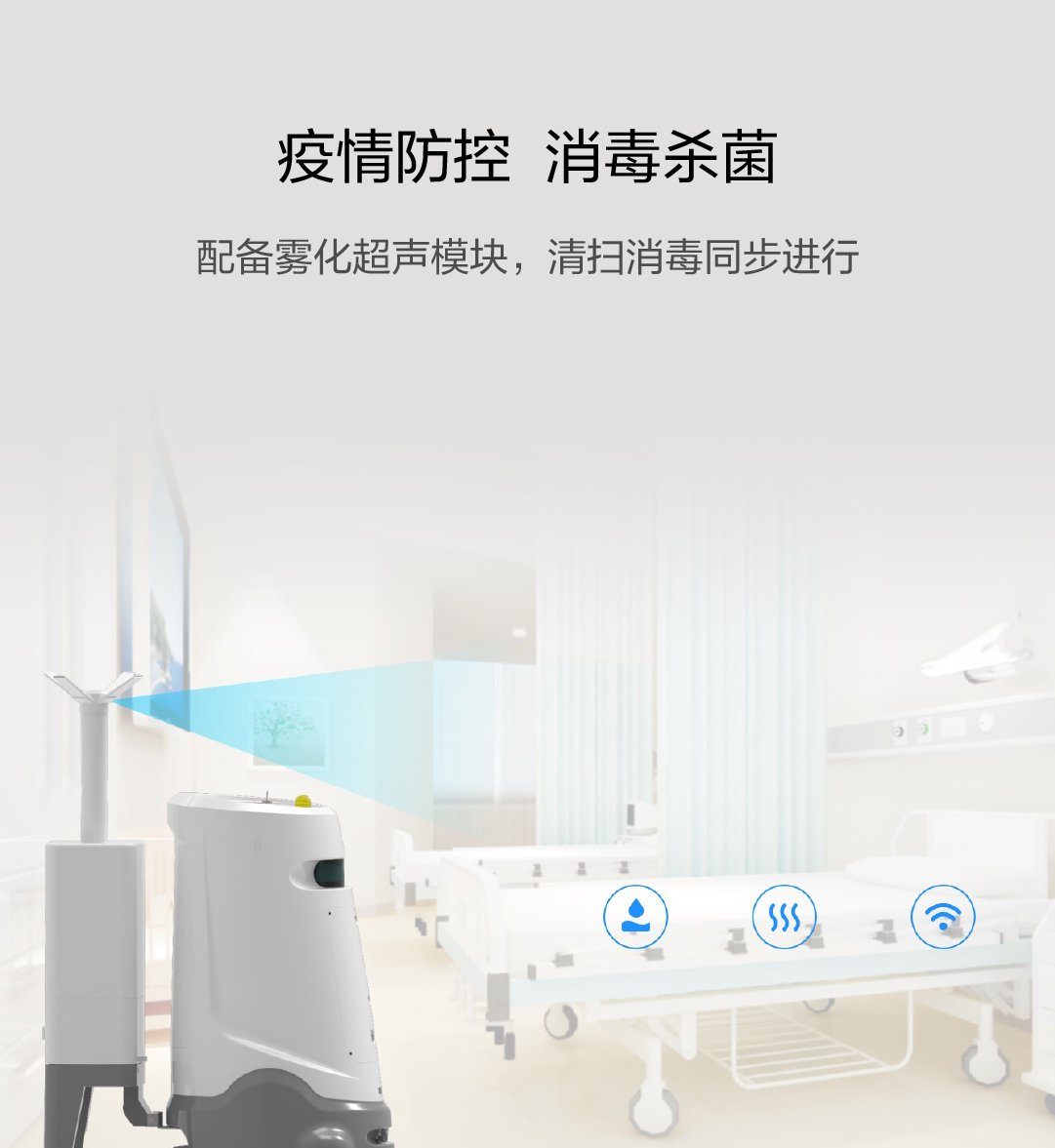 适用于多种复杂场景的无人化清洁消毒作业,省人省力安全高效 云端管控 | 自主导航 | 清洁消毒 | 超长续航