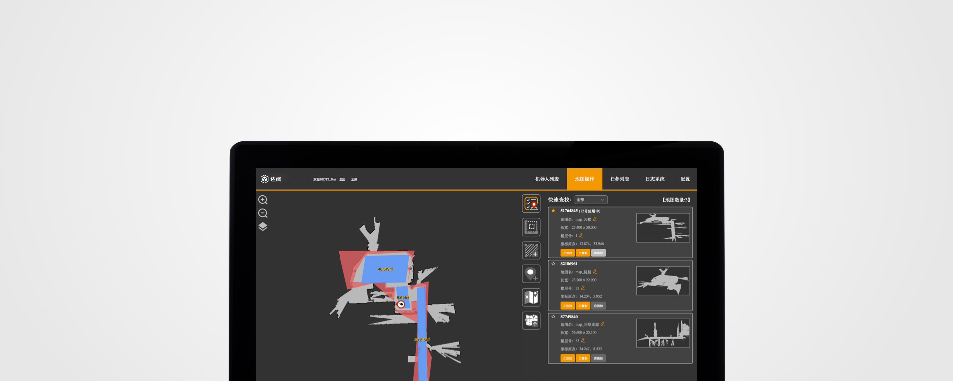 云端进行部署调度,多台机器人配合工作,完成任务后自动归位。